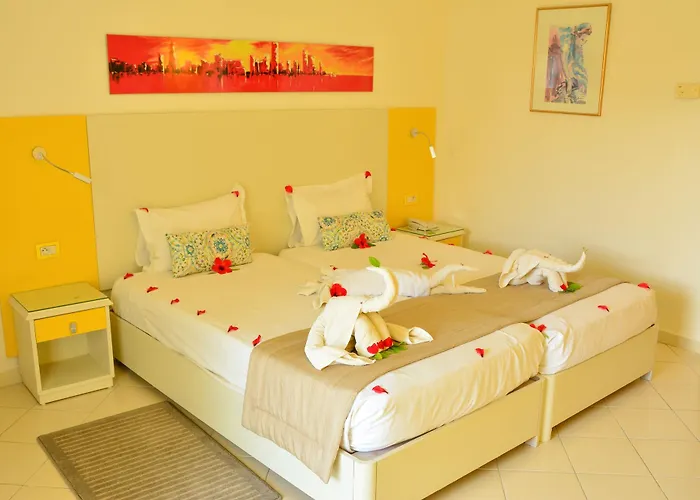 À une courte distance de la Ferme aux Crocodiles, l'hôtel se trouve dans une zone de plage d'Houmt Souk. Il y a un accès facile à la plage privée. L'hôtel est juste à une marche de 10 minutes de l'arrêt de bus le Phare Ennadhour.