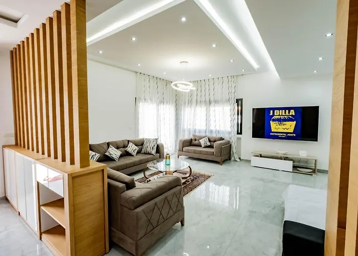 Proposant un emplacement à moins de 20 minutes à pied du musée de Nabeul, Villa Kenza de 400 m² est aussi à moins de 20 minutes de marche du Musée Néapolis. Cette villa de vacances vient avec un coin salon et une TV dans les unités ainsi qu'avec une cuisine complète.