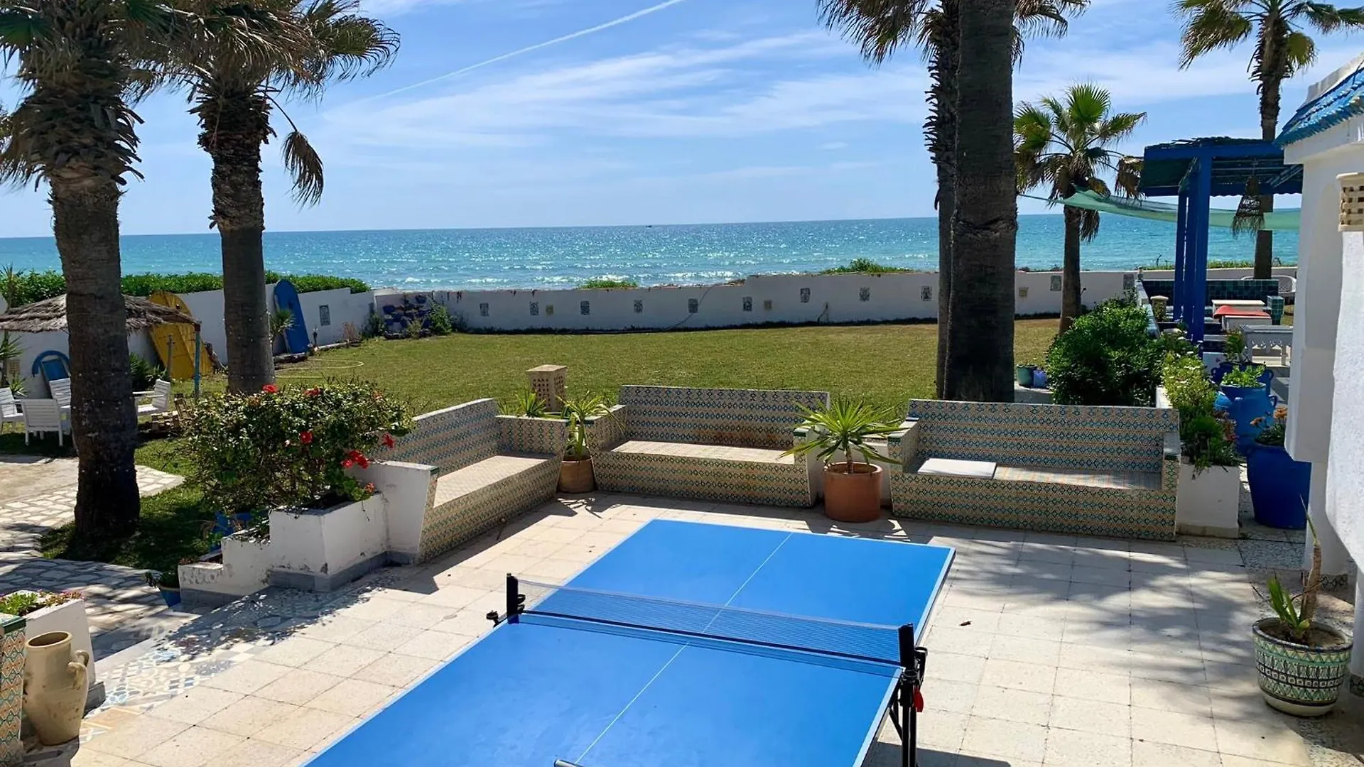 Located in the immediate vicinity of Archeological site of Neapolis, the beachfront Bluesky Home Nabeul offers a terrace with a view over the garden. Providing guests with Wi-Fi and complimentary private parking, the 1-bedroom villa is a 17-minute walk from Sidi Mahrsi.
